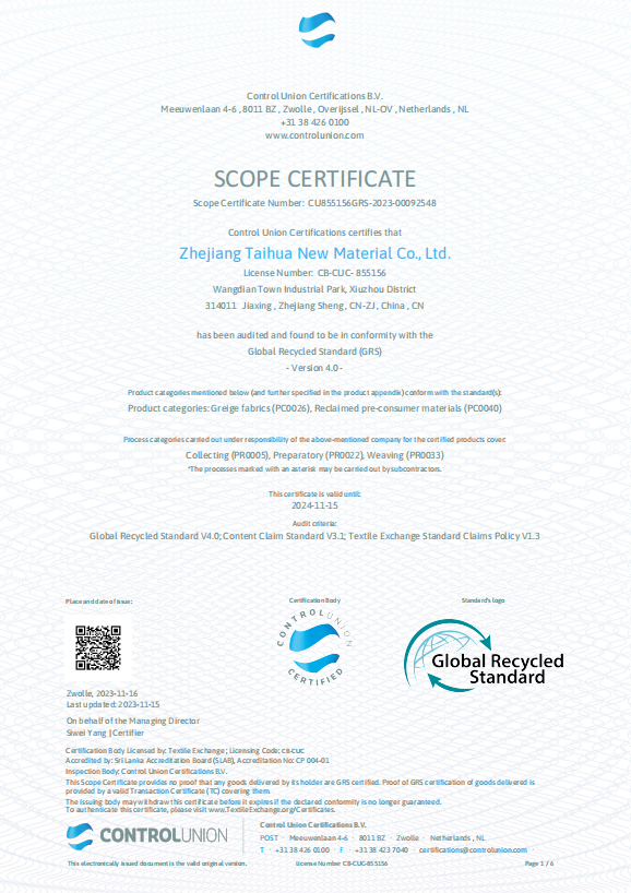 高新染整 GRS 認(rèn)證