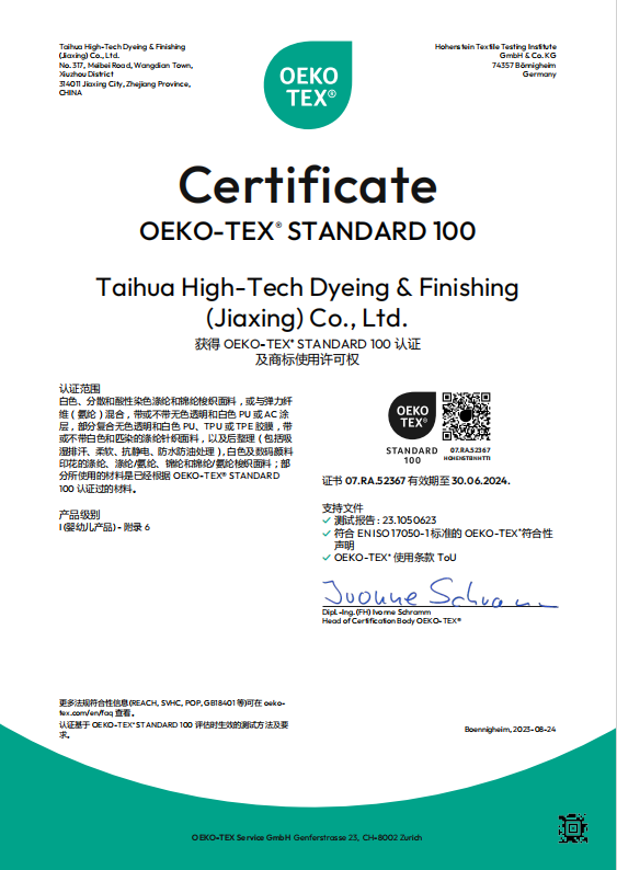 臺(tái)華新材 2023年原生產(chǎn)品Oeko-Tex Standard 100證書(shū)