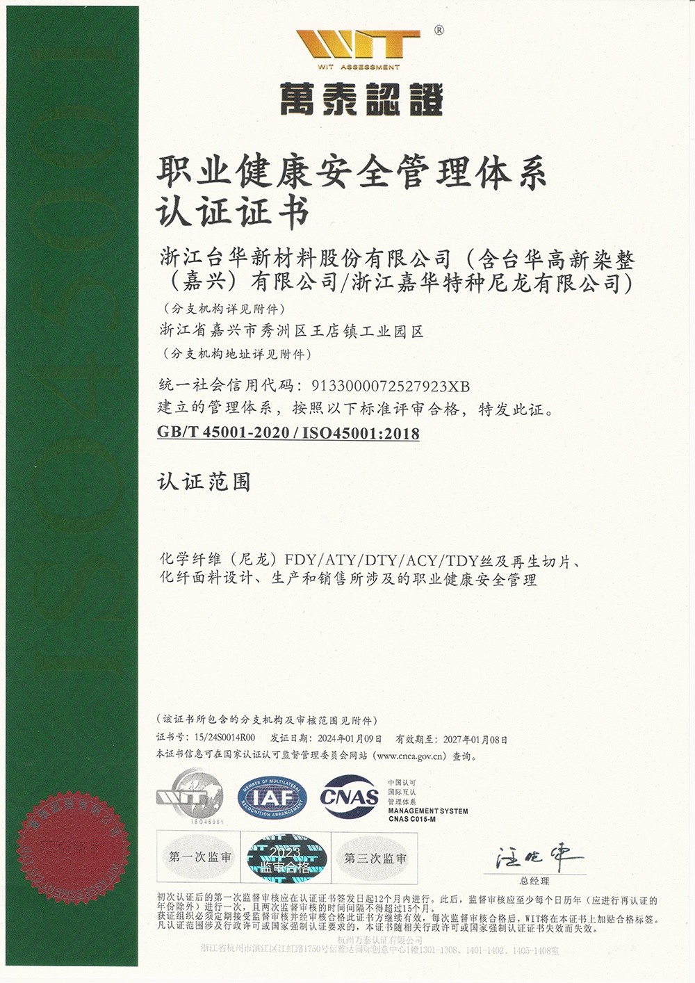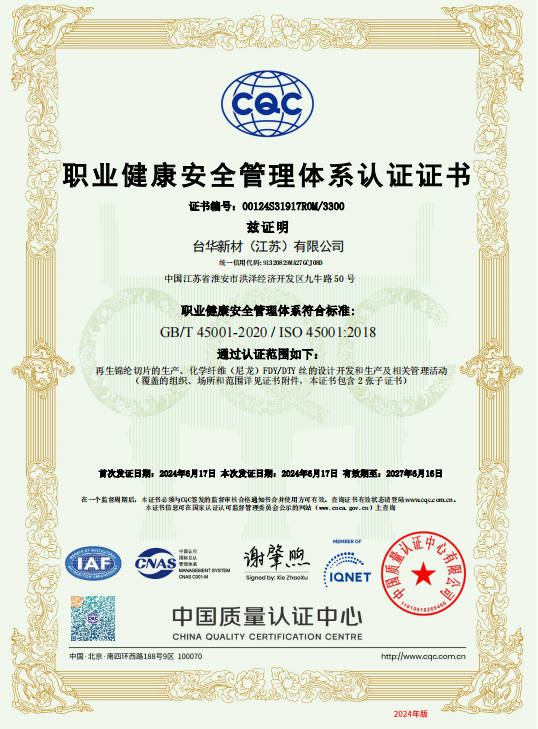 臺(tái)華新材(江蘇)ISO45001