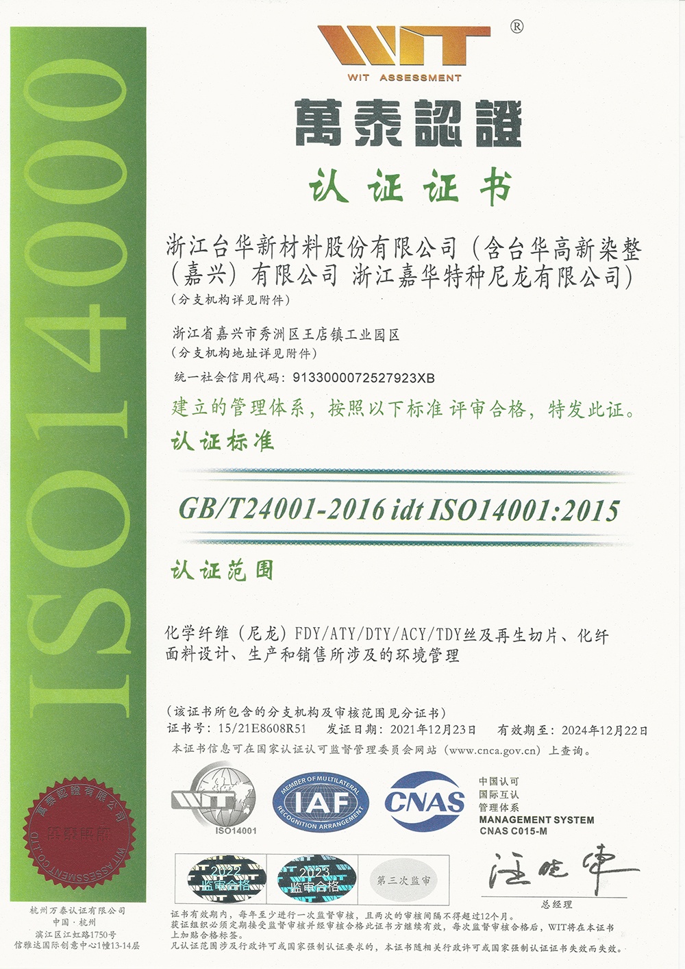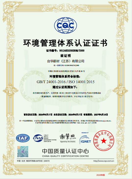 臺(tái)華新材(江蘇)ISO14001