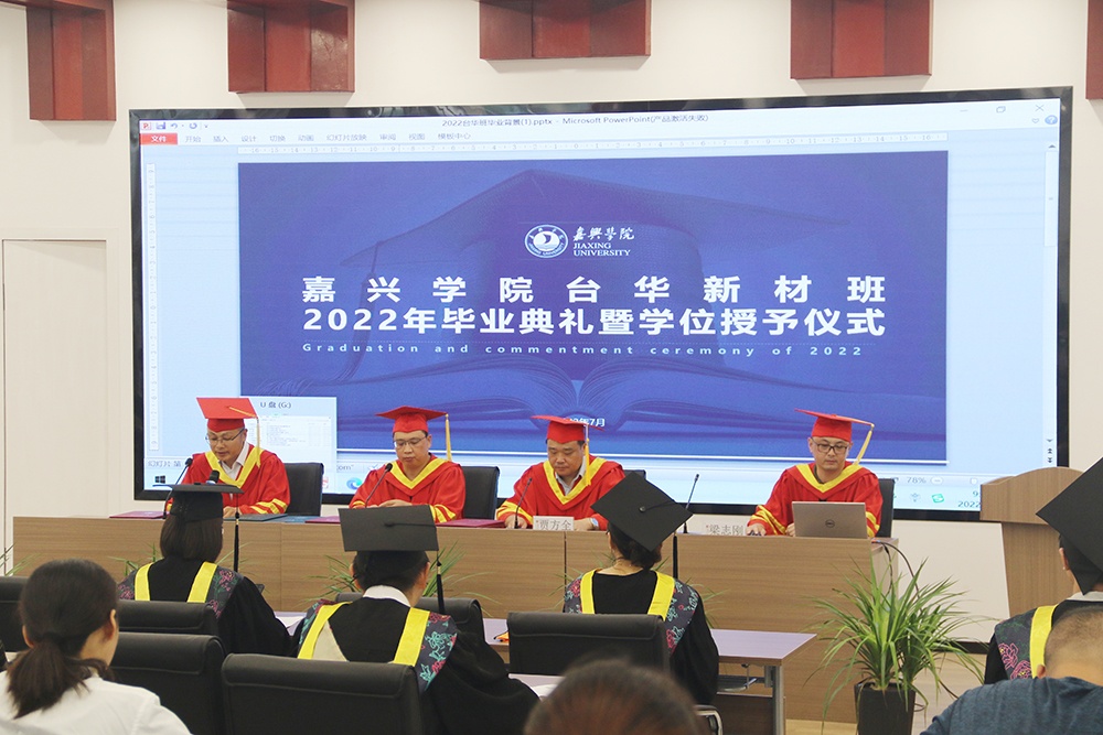 7月16日,嘉興學(xué)院臺(tái)華新材班2022年畢業(yè)典禮暨學(xué)位授予儀式在嘉興學(xué)院繼續(xù)教育學(xué)院順利舉行。嘉興學(xué)院繼續(xù)教育學(xué)院副院長(zhǎng)陳紅新、臺(tái)華新材人力資源總監(jiān)賈方全出席本次儀式,31名畢業(yè)生代表參加。