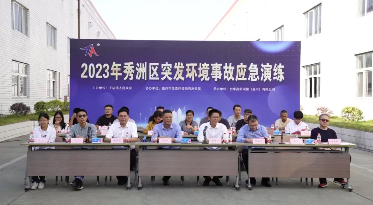 10月31日下午2點(diǎn)30分,2023年秀洲區(qū)突發(fā)環(huán)境事故應(yīng)急演練在我司染整廠(chǎng)舉行。