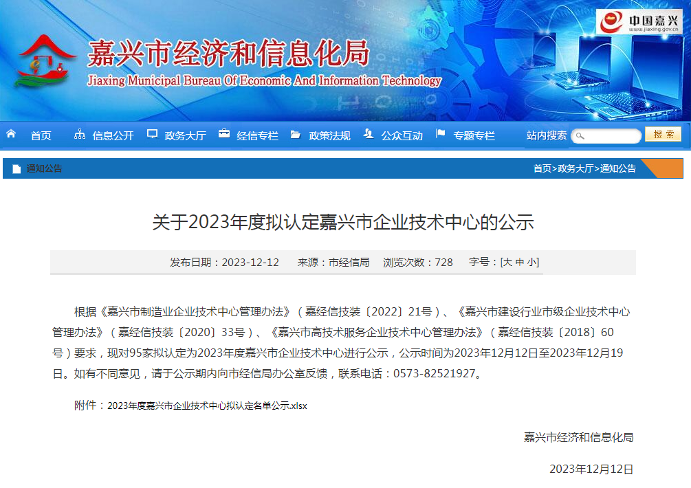 2023年12月12日,嘉興市經(jīng)濟(jì)和信息化局發(fā)布了《關(guān)于2023年度擬認(rèn)定嘉興市企業(yè)技術(shù)中心的公示》,對95家擬認(rèn)定為2023年度嘉興市企業(yè)技術(shù)中心進(jìn)行公示,浙江嘉華特種尼龍有限公司企業(yè)技術(shù)中心上榜。